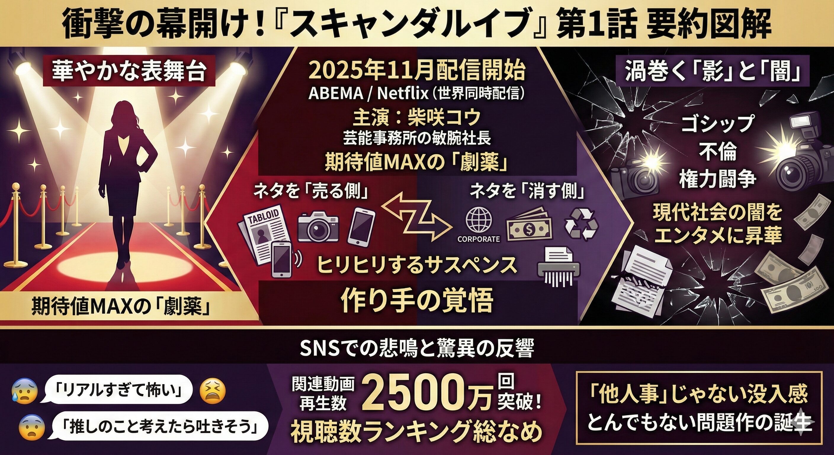 『スキャンダルイブ』は情報リテラシーをテーマにした作品で、フィクションでありながら、多くの観客が共感できる内容になっています。
