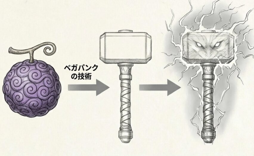 ロキ自身が「伝説の悪魔の実」の能力者であることは確定事項に近いですが、その能力が武器に影響を与えている可能性もあります。 ドフラミンゴやカタクリが見せた「悪魔の実の覚醒」は、周囲の物質にも影響を及ぼします。もしロキが既に能力を覚醒させているなら、彼が触れるもの、あるいは彼が支配する武器「ラグニル」自体が、彼の能力の一部として機能しているのかもしれません。