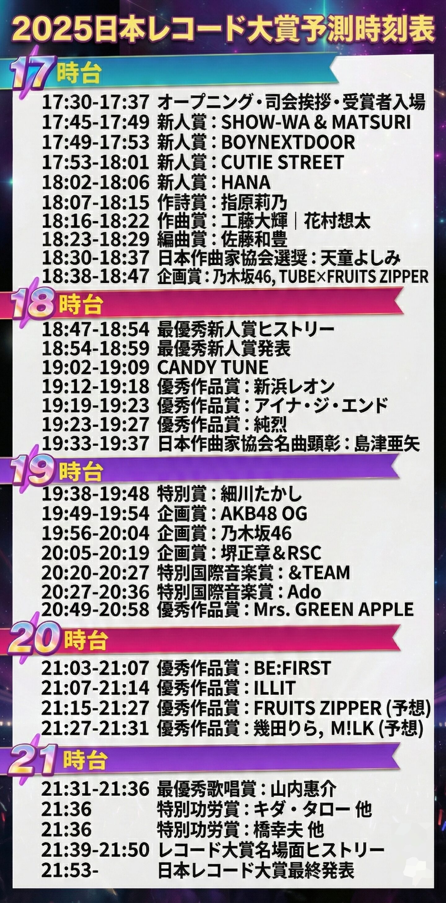 日本レコード大賞2025タイムテーブルや出演順番(曲順)