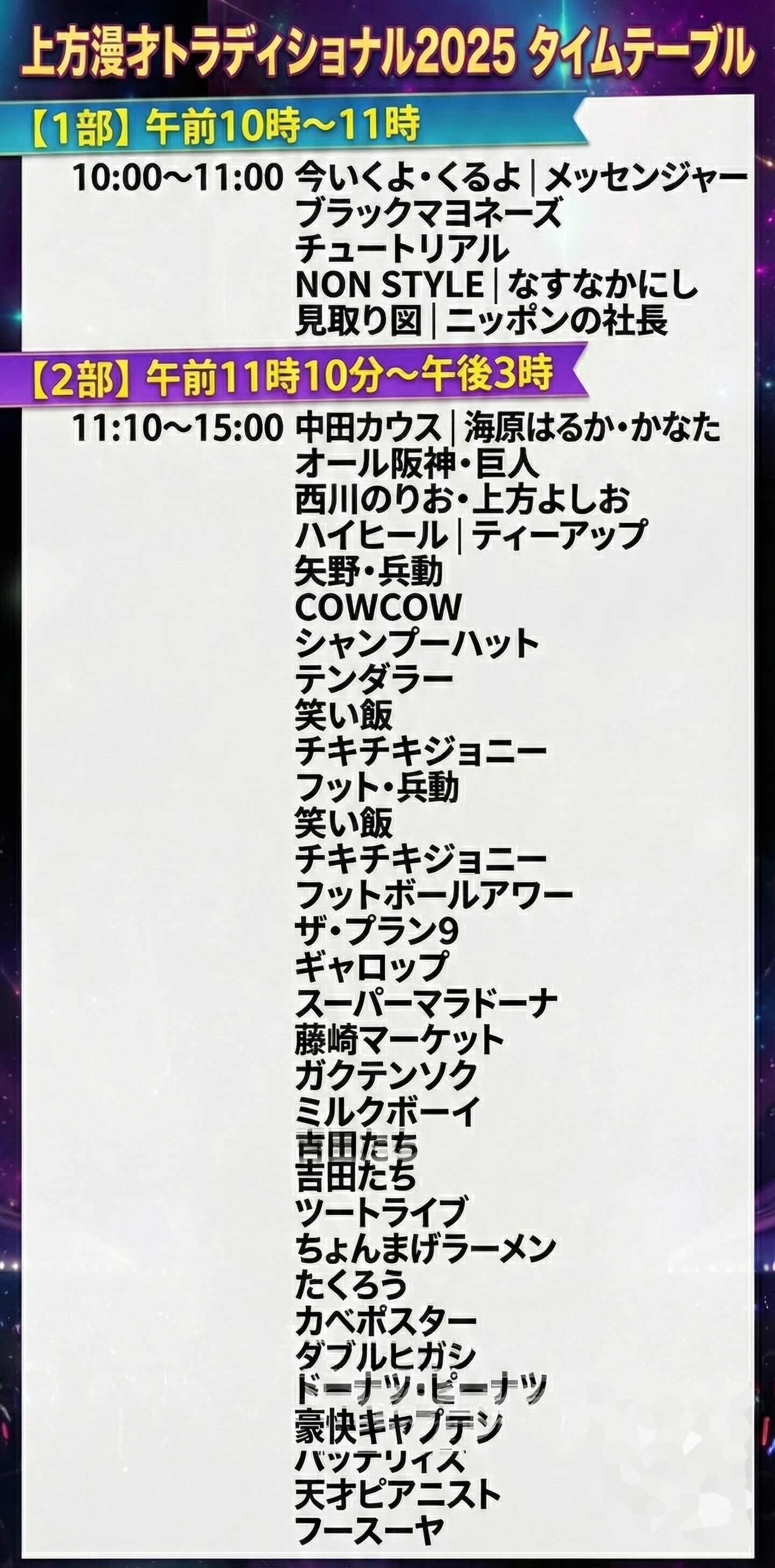 上方漫才トラディショナル2025出演ネタ順番やタイムテーブルは?