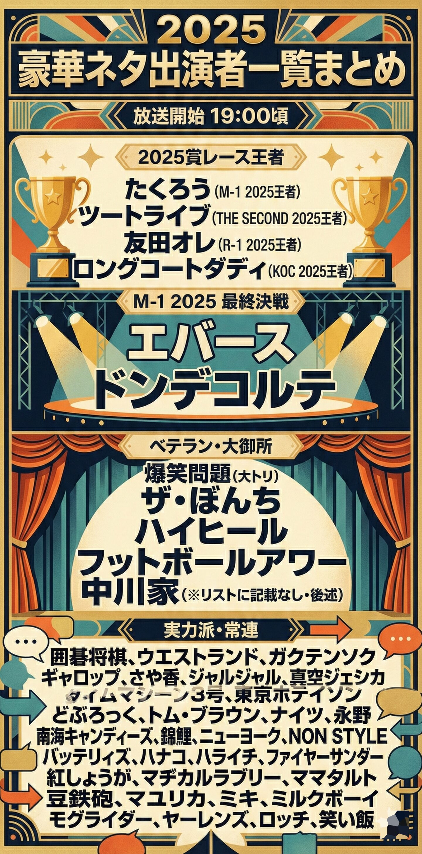 ここでは、発表された「ネタ出演者」を見やすくジャンルや注目ポイントで整理してみました。